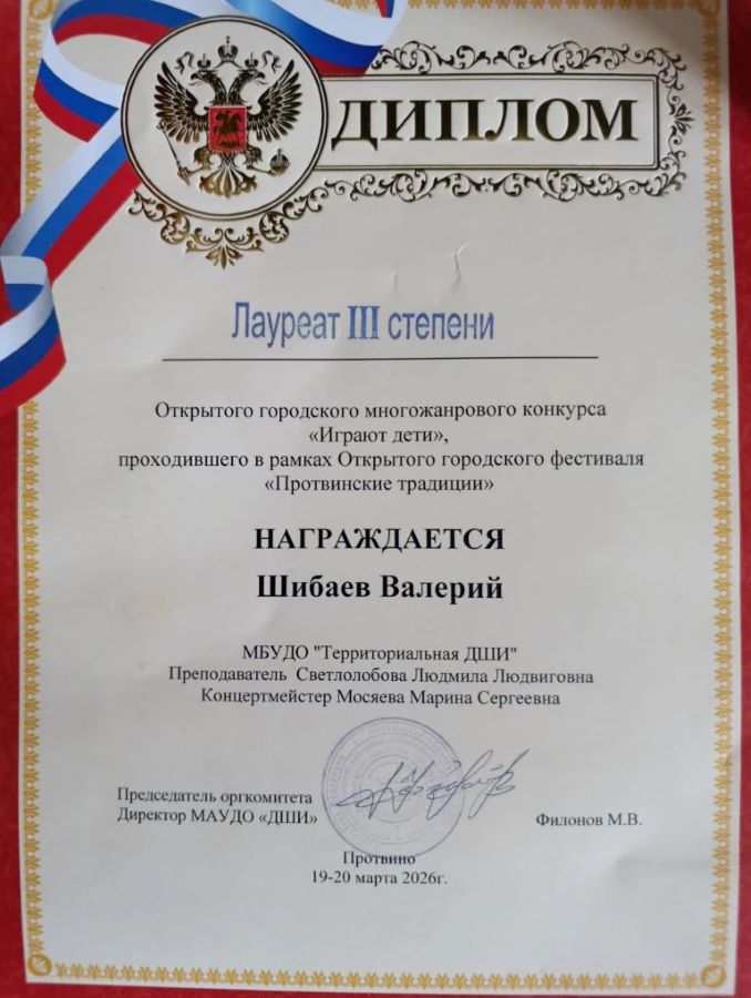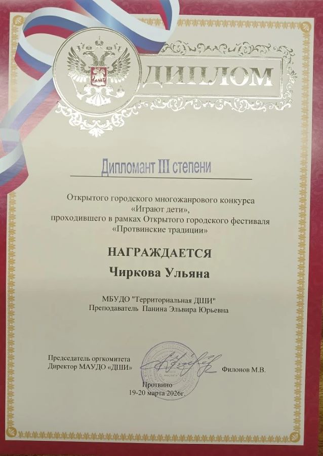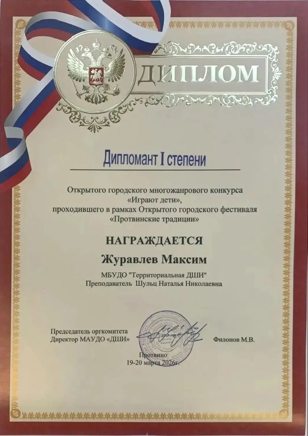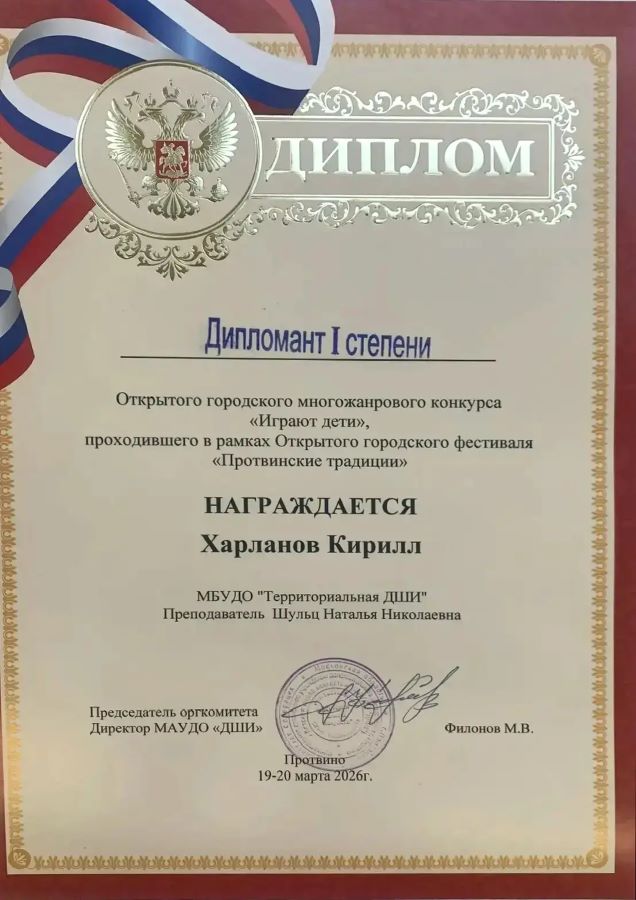 Поздравляем с победой и участием наших учеников и преподавателей в Городском открытом многожанровом конкурсе «Протвинские традиции. Играют дети», проходившего в рамках Городского открытого фестиваля педагогического мастерства - 2026: